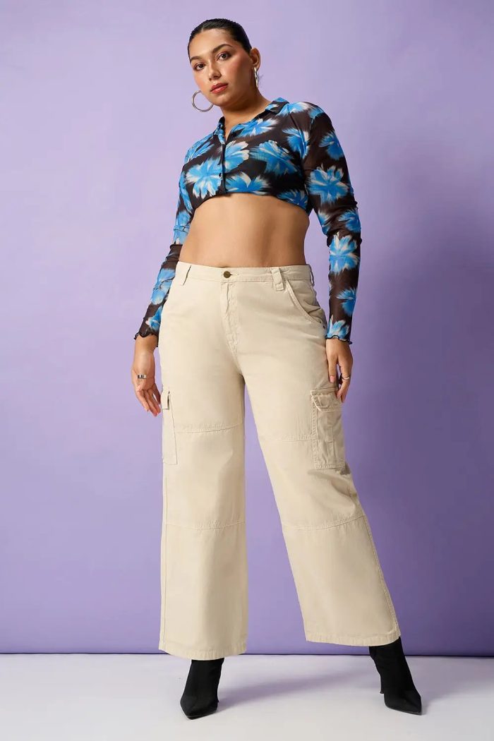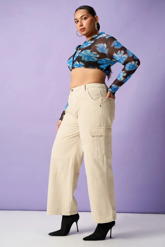 Description: The Mistfall Curve Straight Fit Cargo Jeans in ecru bring a fresh twist to classic utility style. With their relaxed, straight-leg cut and oversized cargo pockets, these jeans offer both practicality and on-trend flair. The ecru color adds a light, airy vibe, making them easy to pair with any top or jacket. Designed to flatter your curves, these cargo jeans combine comfort, style, and functionality, giving you a laid-back yet bold look for everyday wear.